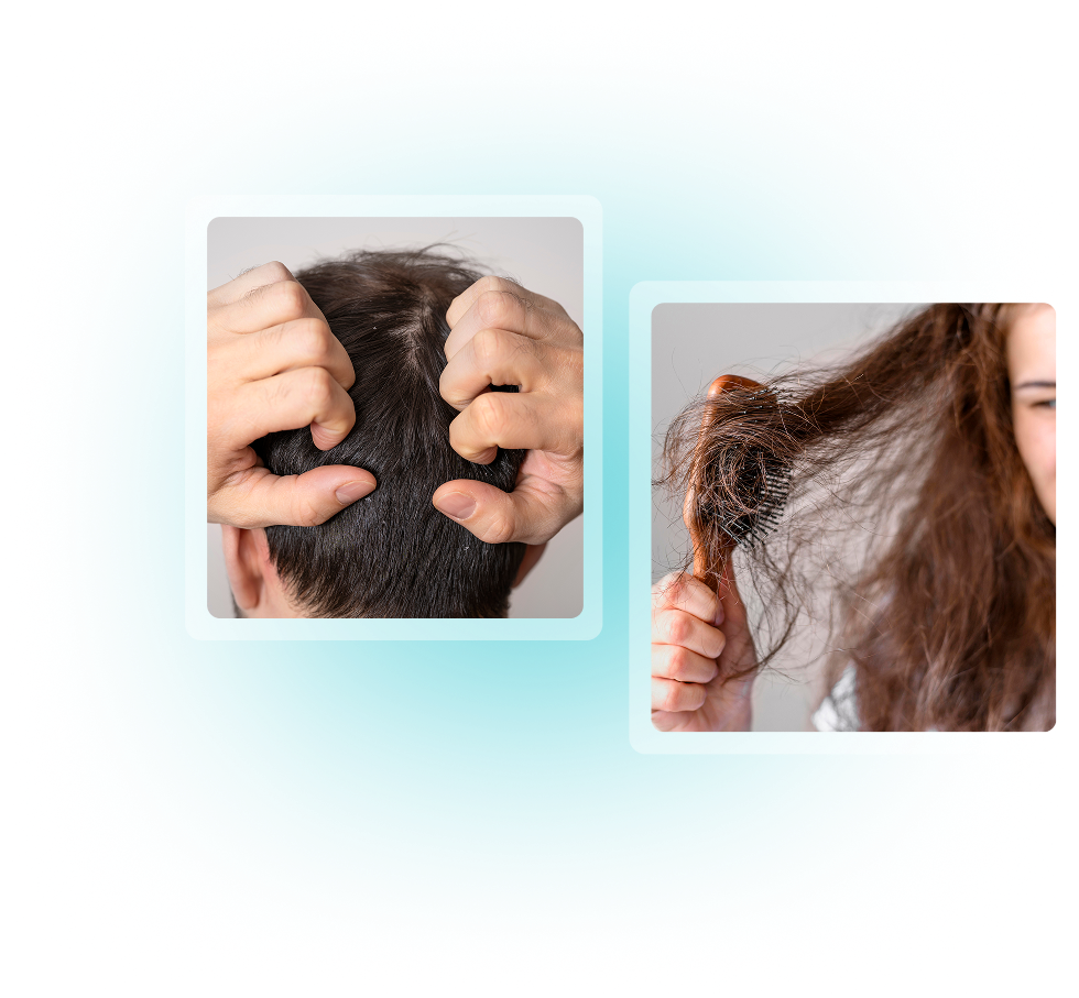 Dandruff, inflammation, or infections damage hair follicles, affecting hair growth and overall scalp health.